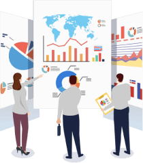 金融機関を狙う不正ログイン・不正アクセスに対して、端末の動作といったミクロ視点のデータを解析し、検知。また、EC事業者を狙う不正な注文者を「怪しい買い方」というマクロ視点から審査・検知。EC向け不正検知では実績No.1(※)を獲得しています。